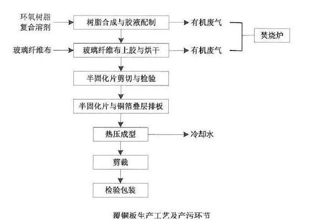 當前覆銅板、層壓板的生產是采用“濕法生產工藝”,即先將樹脂用有機溶劑配成膠液,再用上膠機對基材上膠、烘干。大量的有機溶劑被揮發出來,它們與空氣的混合物被稱作廢氣。對于以苯酚和甲醛為原料的產品的生產,廢氣中還包含有一定量的苯酚和甲醛。這些廢氣如排入大氣,就對環境造成嚴重污染。因此對于覆銅板廢氣處理應該高度重視。